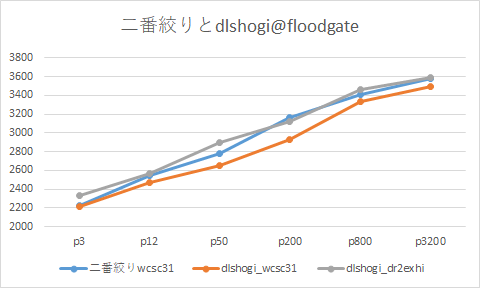 それと,二番絞りの現状としてdlshogiに対してwcsc31時点であったアドバンテージはほぼ無くなったと言ってよい。